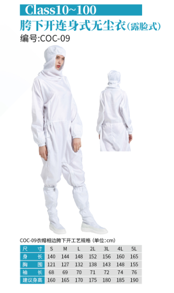 产品描述:胯下开连身式无尘衣